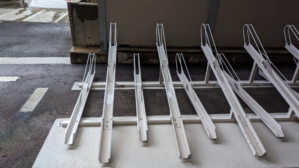 現在の駐輪場のラックを、重量の重い電動アシスト自転車対応のラックに、更新(入替)したい。というご相談が増えています。