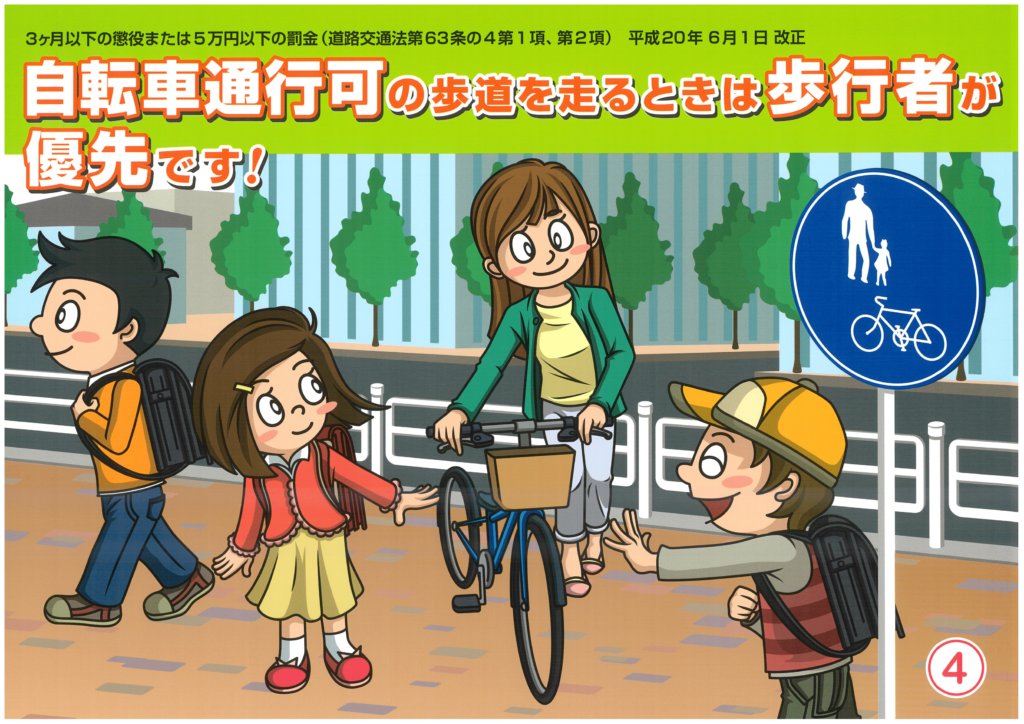 1)車道が原則、左側通行 歩道は例外、 歩行者を優先