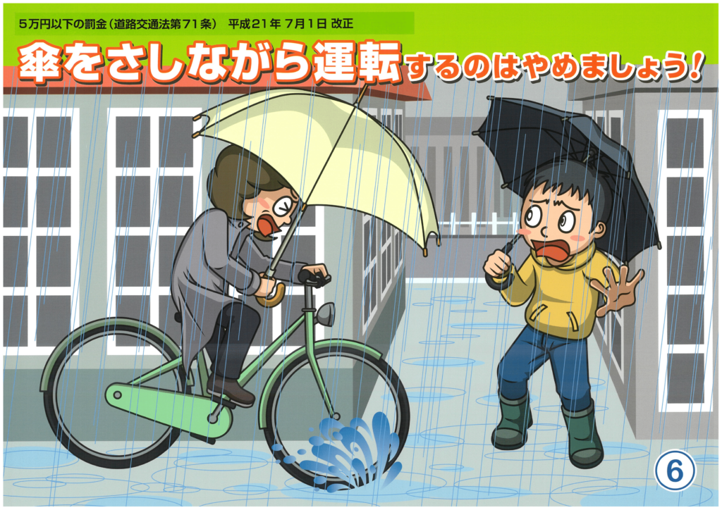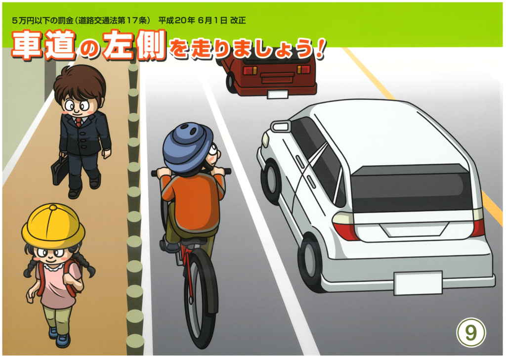 以上5つの項目が「自転車安全利用五則」として挙げられていますが、